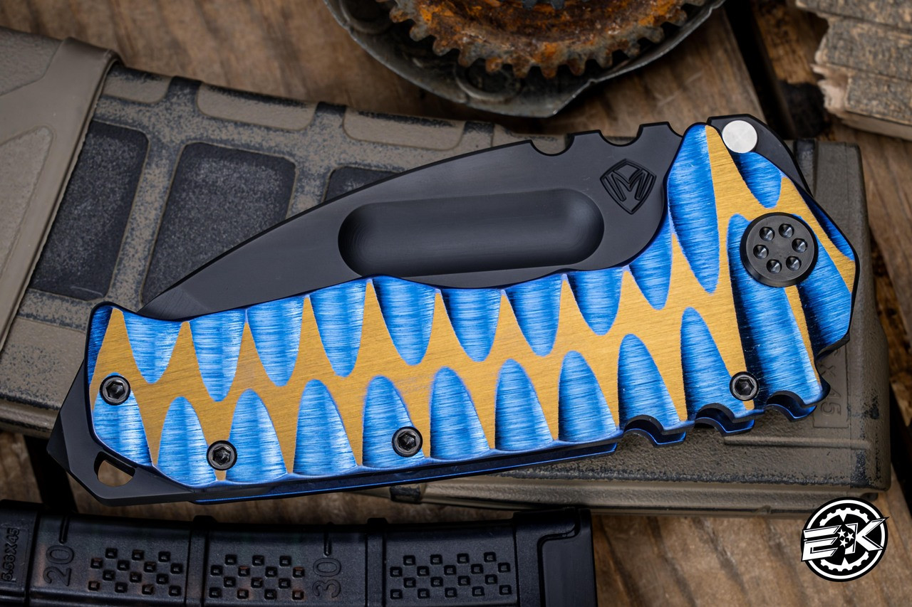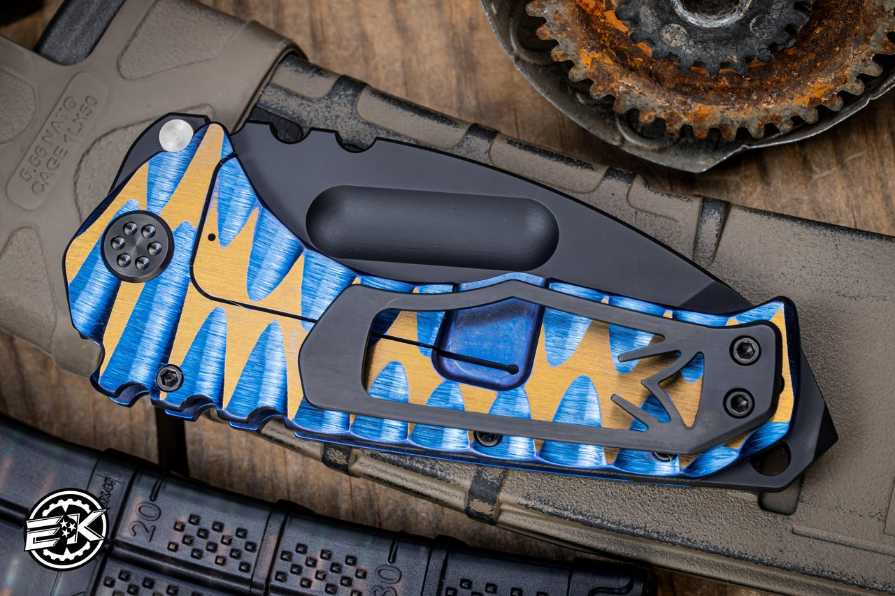 Medford Praetorian Ti Folding Knife Blue/Bronze "Lazy River" Sculpted Titanium 3.75" DLC Tanto