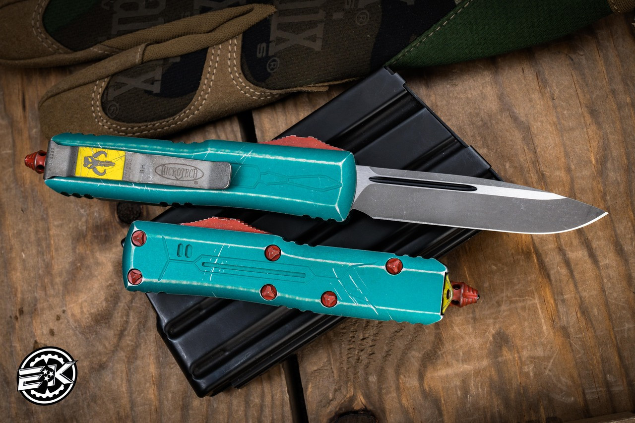 The Microtech UTX-85 out the front knife is a compact pocket friendly auto with functional greatness packaged into Microtech's stellar design perfected by company owner Anthony Marfione. The UTX 85 comes with a stainless steel blade and hardware including screws, pocket clip and thumb slide for deployment and retraction.