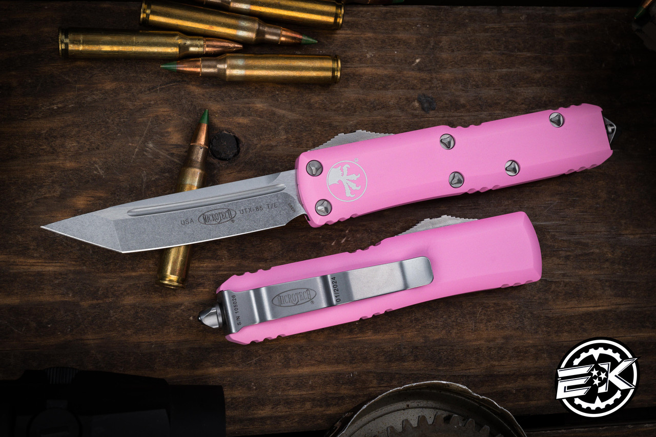 The Microtech UTX-85 out the front knife is a compact pocket friendly auto with functional greatness packaged into Microtech's stellar design perfected by company owner Anthony Marfione. The UTX 85 comes with a very high quality steel blade and stainless steel hardware including screws, pocket clip and thumb slide for deployment and retraction.