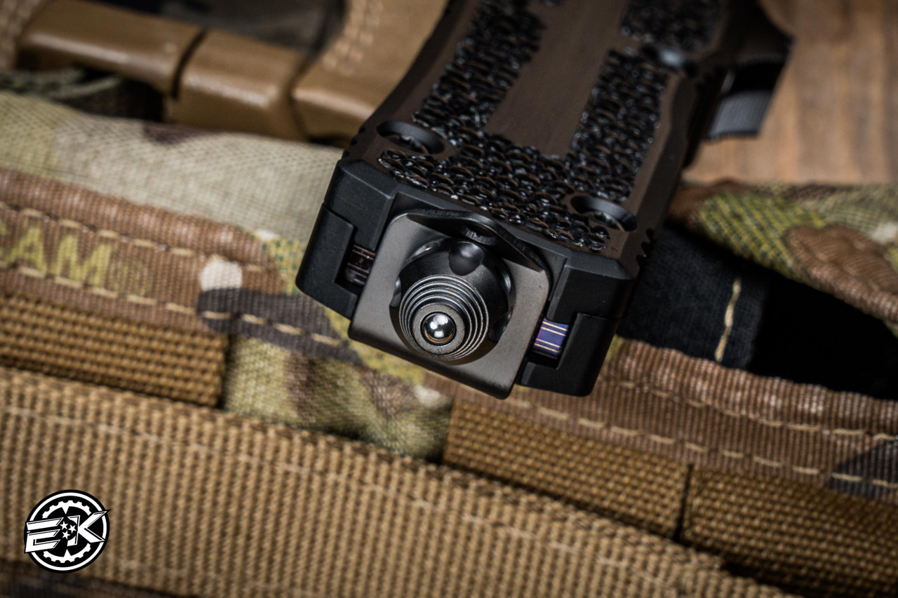 The Scarabs handle has sleek rounded edges and 3M inlays that allow for comfortable and secure grip, making it an ideal choice for everyday carry for tactical applications.