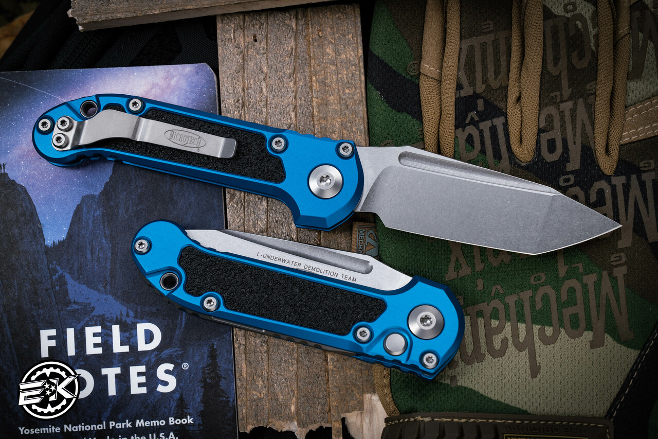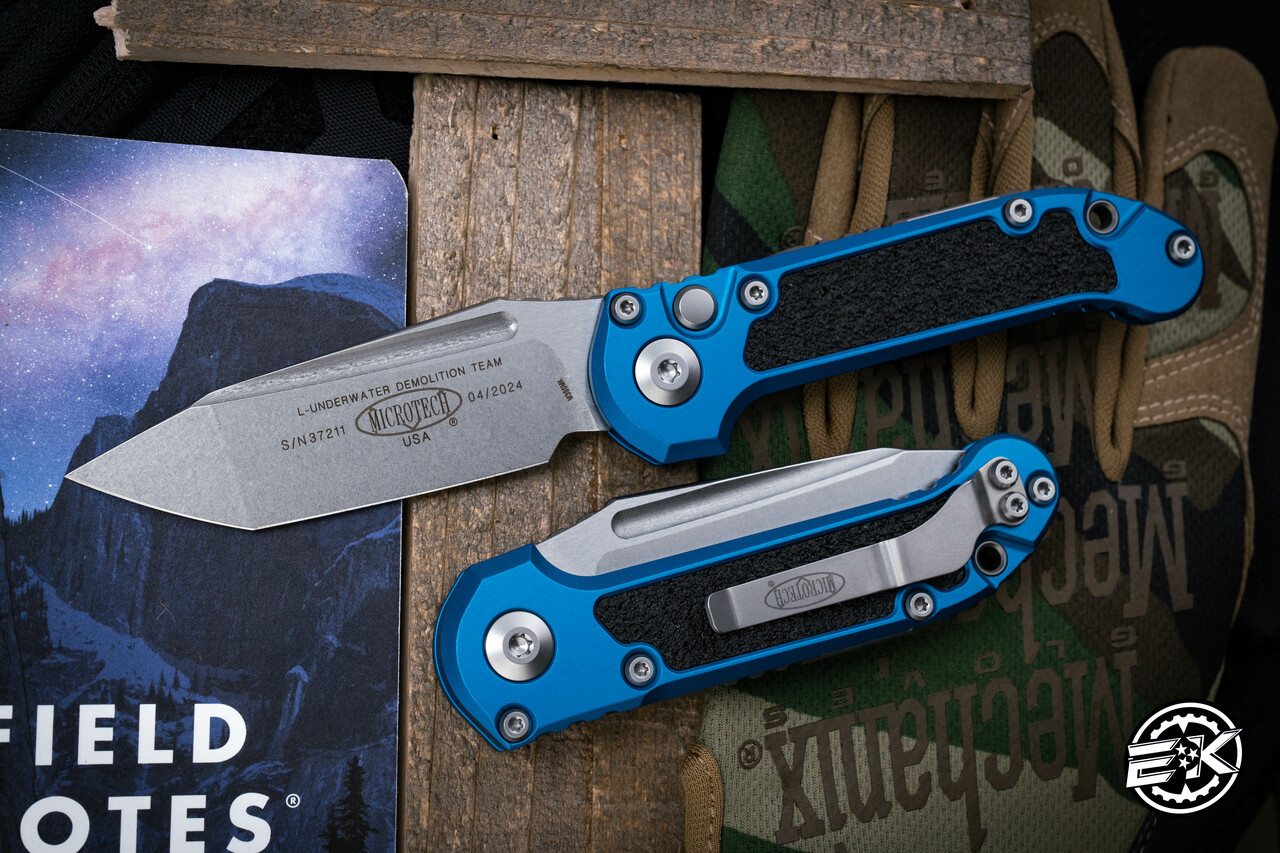 This 2023 Microtech LUDT is a limited edition automatic knife, making it a rare find for collectors and enthusiasts. The LUDT features a 3.4" tanto blade with a stonewash finish, providing both durability and a sleek aesthetic. The blue handle with grip inlay ensures a secure and comfortable hold during use.