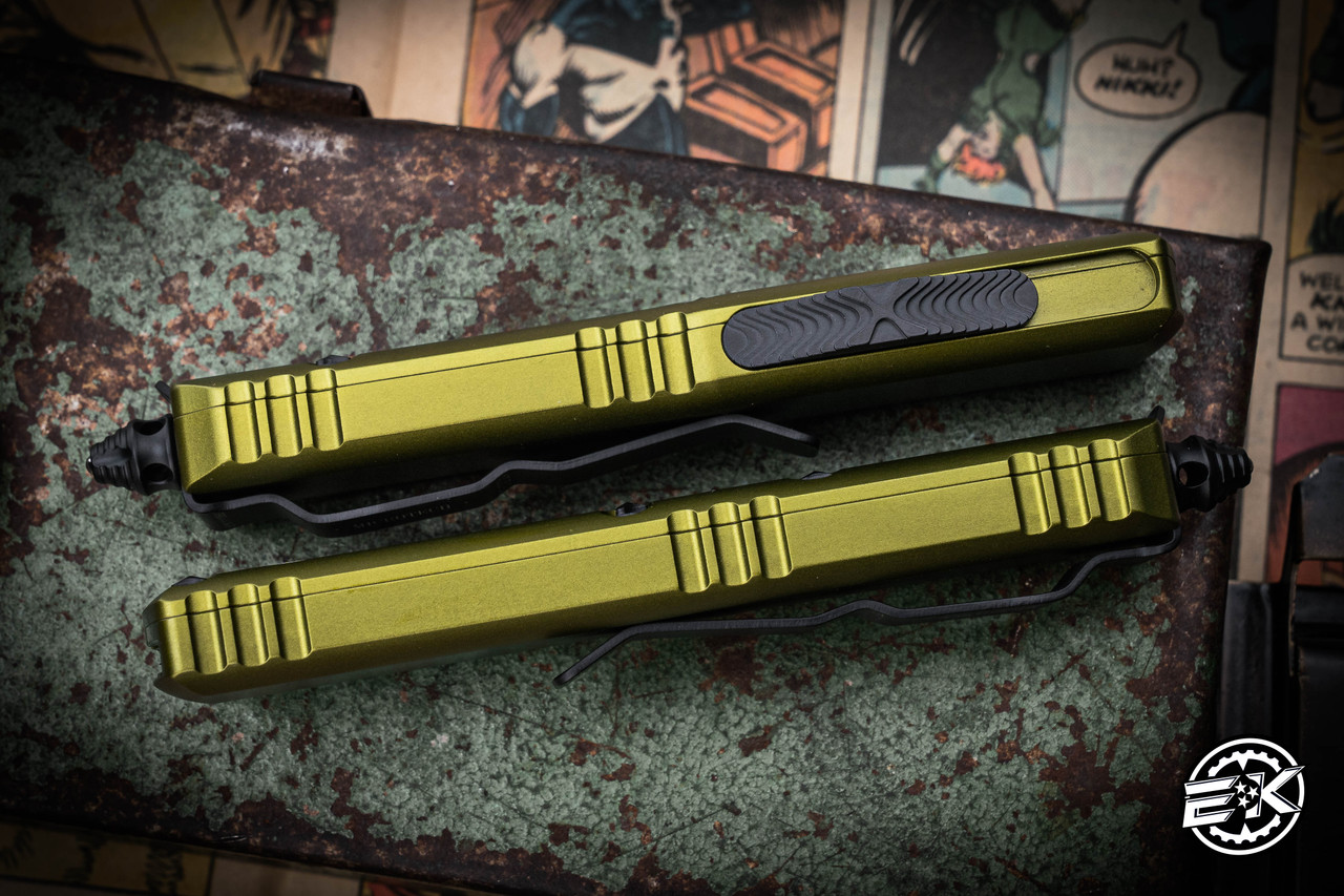The Microtech UTX-85 OTF out the front knife is a compact pocket friendly auto with functional greatness packaged into Microtech's stellar design perfected by company owner Anthony Marfione. The UTX 85 comes with stainless steel hardware including screws, pocket clip and thumb slide for deployment and retraction.